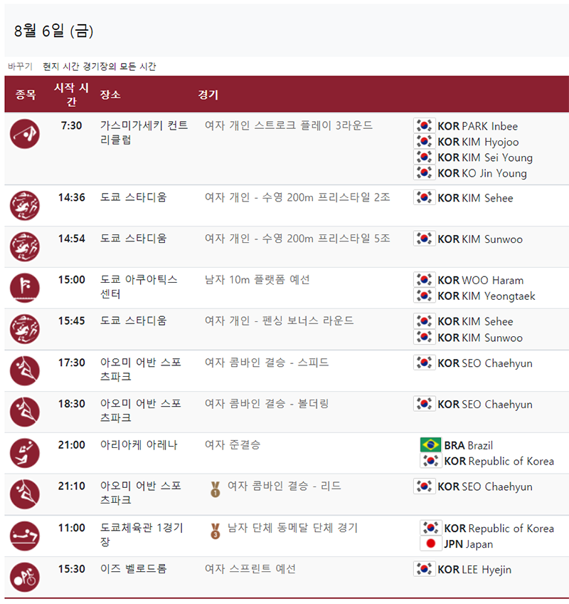 (한시적 넘겨주기) 2020 도쿄올림픽 대한민국 배구 일정에 대한 내용은 2020 도쿄 올림픽/대한민국/배구 문서 도쿄올림픽 배구. 배우 최현욱 인스타스토리 (도쿄올림픽 야구) 9.